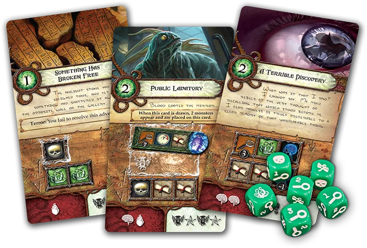 Elder Sign is a fast-paced, cooperative dice game of supernatural intrigue for one to eight players by Richard Launius and Kevin Wilson, the designers of Arkham Horror. Armed with tools, allies, and occult knowledge, investigators must put their sanity and stamina to the test as they adventure to locate Elder Signs, the eldritch symbols used to seal away the Ancient Ones and win the game.